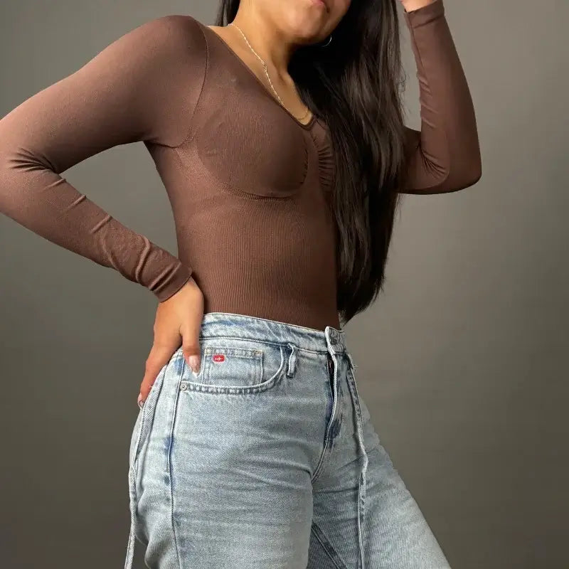 Te sientes insegura por tus rollitos o te da vergüenza usar tus prendas?, Ahora, con nuestro Body Manga Larga, olvídate de las preocupaciones.